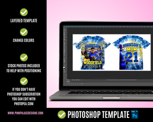Youth Football t-shirt design, game day t shirt design, high school football t shirt design, college football t shirt design, Yellow and Blue All over shirt, tie dye all over shirt