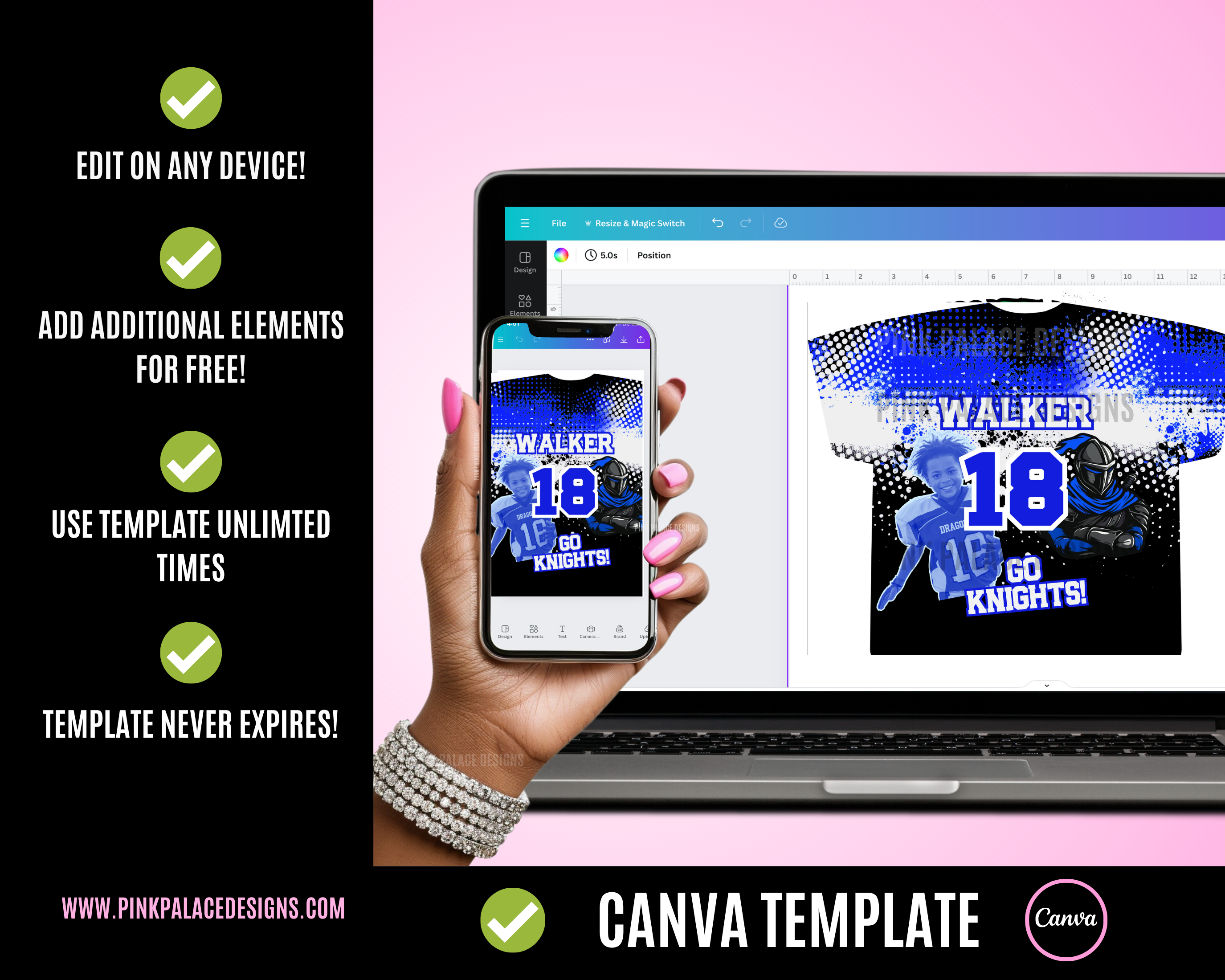 It's time represent your player! This design file is editable in canva and you can use for any project such as t-shirts, stickers, banners, bags, flags, flyers and more!