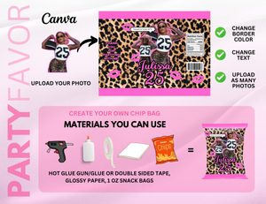 Create your own Trendy Birthday SZN Party Bundle! Personalize your own chip bag, Styrofoam cup sticker, shot glass sticker, party hat water label and drink stir stick! Edit by yourself or grab a friend to assemble your party favors! Our supply list is included so you can quickly get started! Once you master this set you can create sets for your family & friends like a pro!