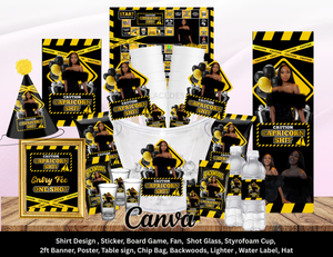 Create your own Trendy Birthday SZN Party Bundle! Personalize your own chip bag, Styrofoam cup sticker, shot glass sticker, party hat water label and drink stir stick! Edit by yourself or grab a friend to assemble your party favors! Our supply list is included so you can quickly get started! Once you master this set you can create sets for your family & friends like a pro!