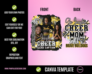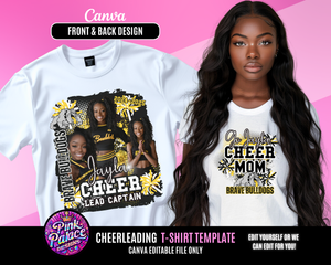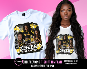 It's time represent your cheerleader! This design file is editable in canva and you can use for any project such as t-shirts, stickers, banners, bags, flags, flyers and more!