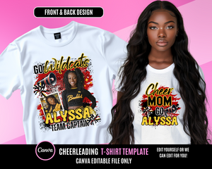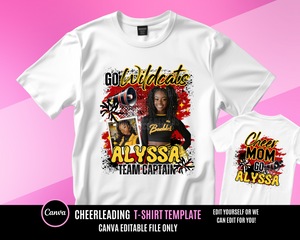 It's time represent your cheerleader! This design file is editable in canva and you can use for any project such as t-shirts, stickers, banners, bags, flags, flyers and more!