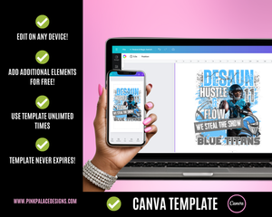 It's time represent your player! This design file is editable in canva and you can use for any project such as t-shirts, stickers, banners, bags, flags, flyers and more!