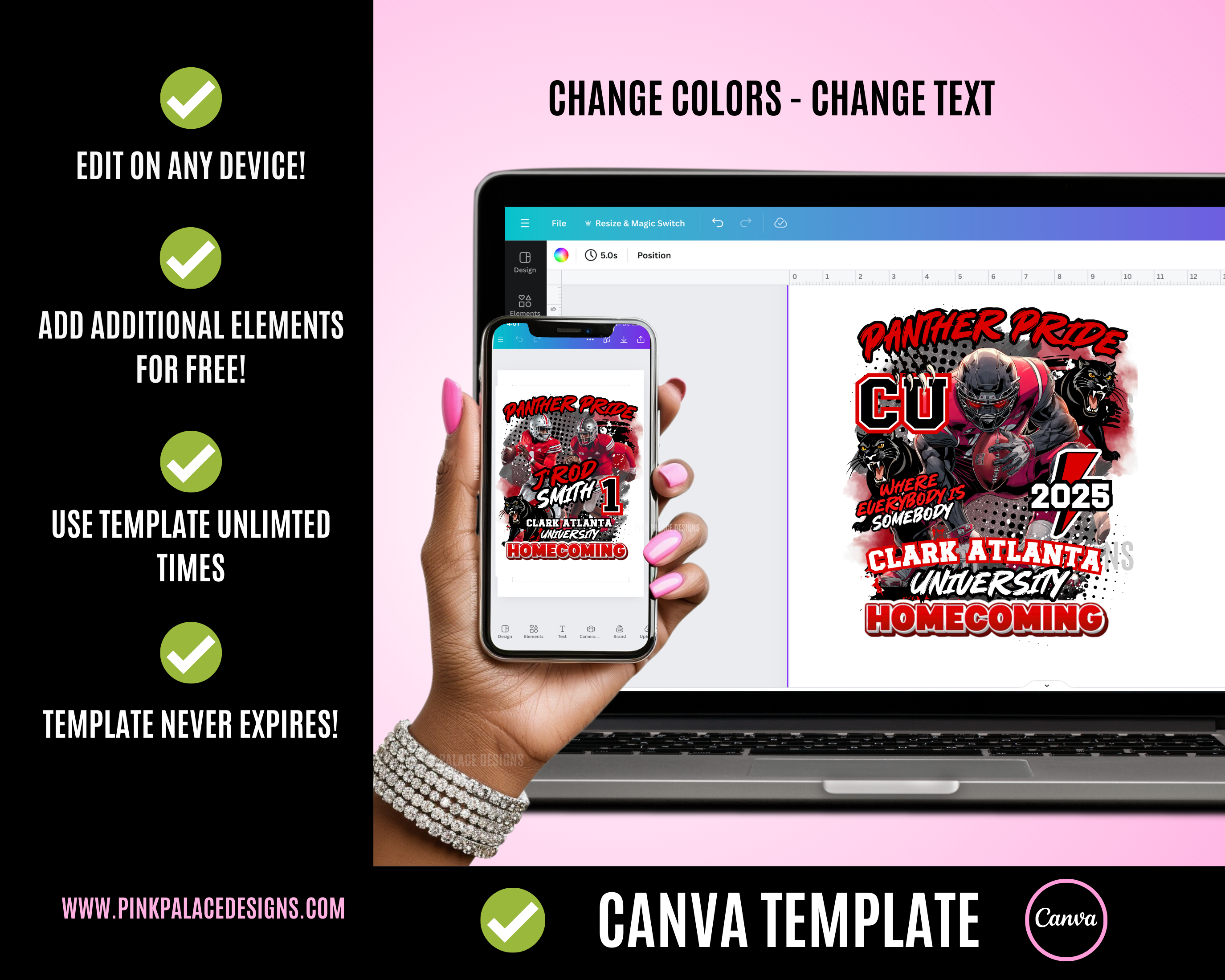 Edit this shirt design today for your homecoming! Edit and download within minutes! Print at home or at your local shop!