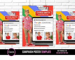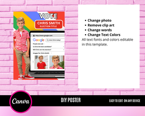 Edit this poster today for your homecoming election! Edit and download within minutes! Print at home or at your local shop!