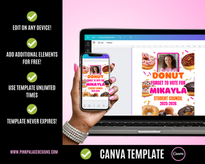 Edit this poster today for your homecoming election! Edit and download within minutes! Print at home or at your local shop!