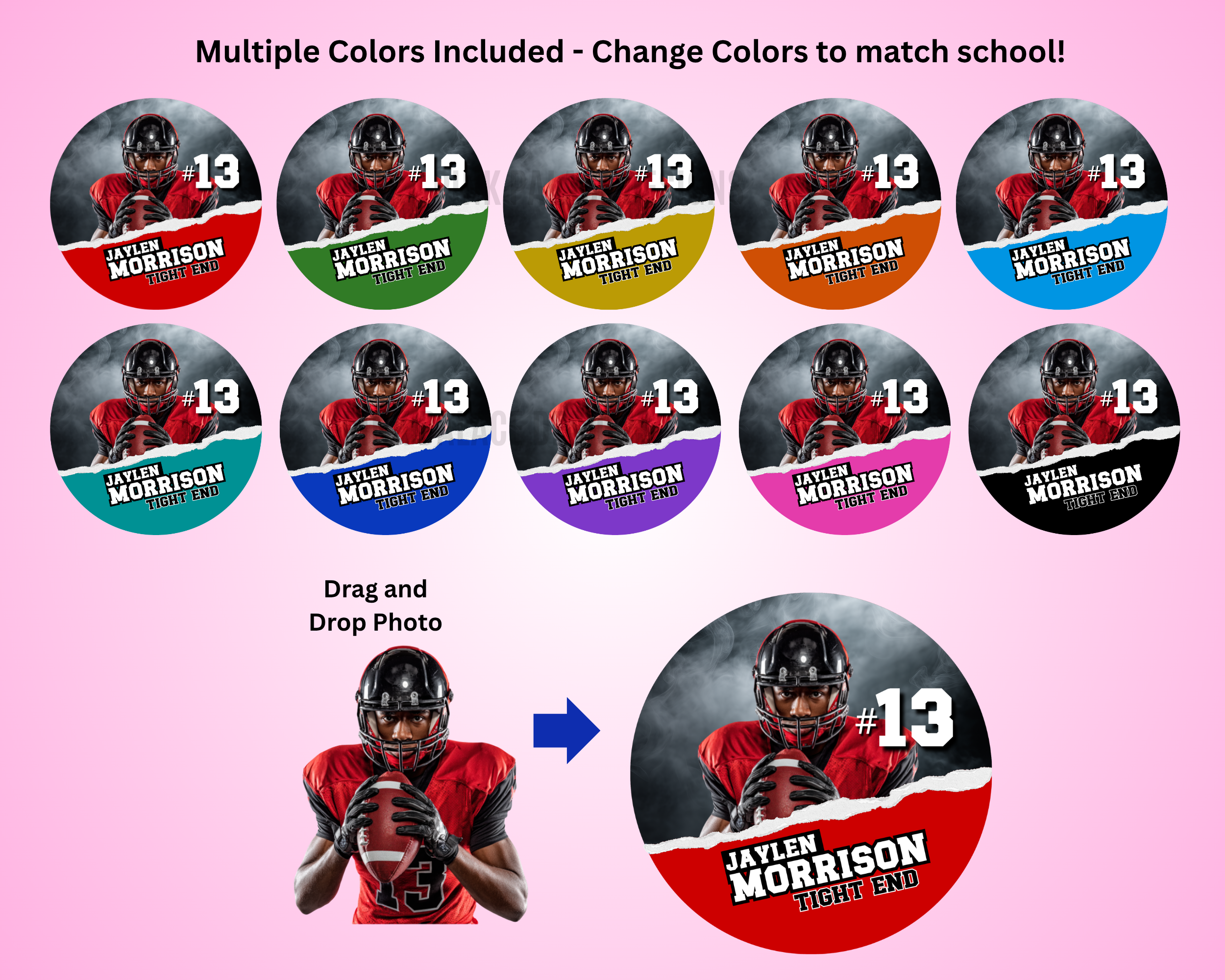 Create your own football buttons or stickers! Simply download template, edit with canva.com or canva app. Upload your transparent photo and drag and drop into frame.