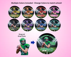 Create your own football buttons or stickers! Simply download template, edit with canva.com or canva app. Upload your transparent photo and drag and drop into frame.