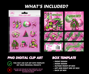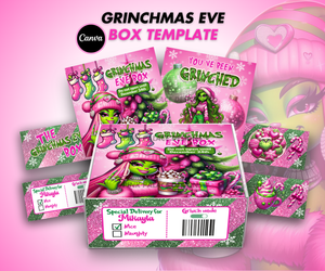 Get ready to add a festive twist to your girls' night out with this Girls Night Grinchmas Box Template! Perfect for creating a memorable holiday gathering, this editable Canva template lets you customize your own unique Grinch-themed box. Featuring high-quality, adorable graphics with a girly flair, this template is designed for an 8" x 8" x 4" box—perfect for gifts, goodies, or holiday surprises!
