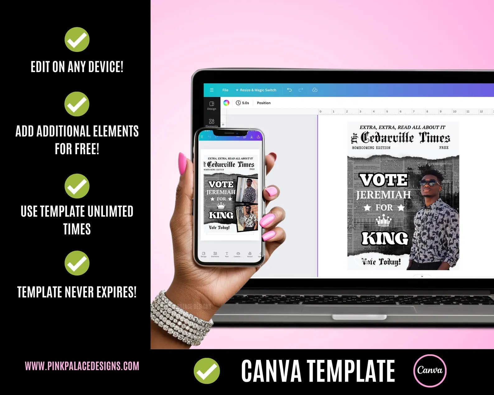 Vote homecoming queen , Social Media Flyer, homecoming poster, high School homecoming, college homecoming