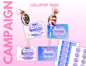 Edit this lollipop tag today for your homecoming election! Edit and download within minutes! Print at home or at your local shop!