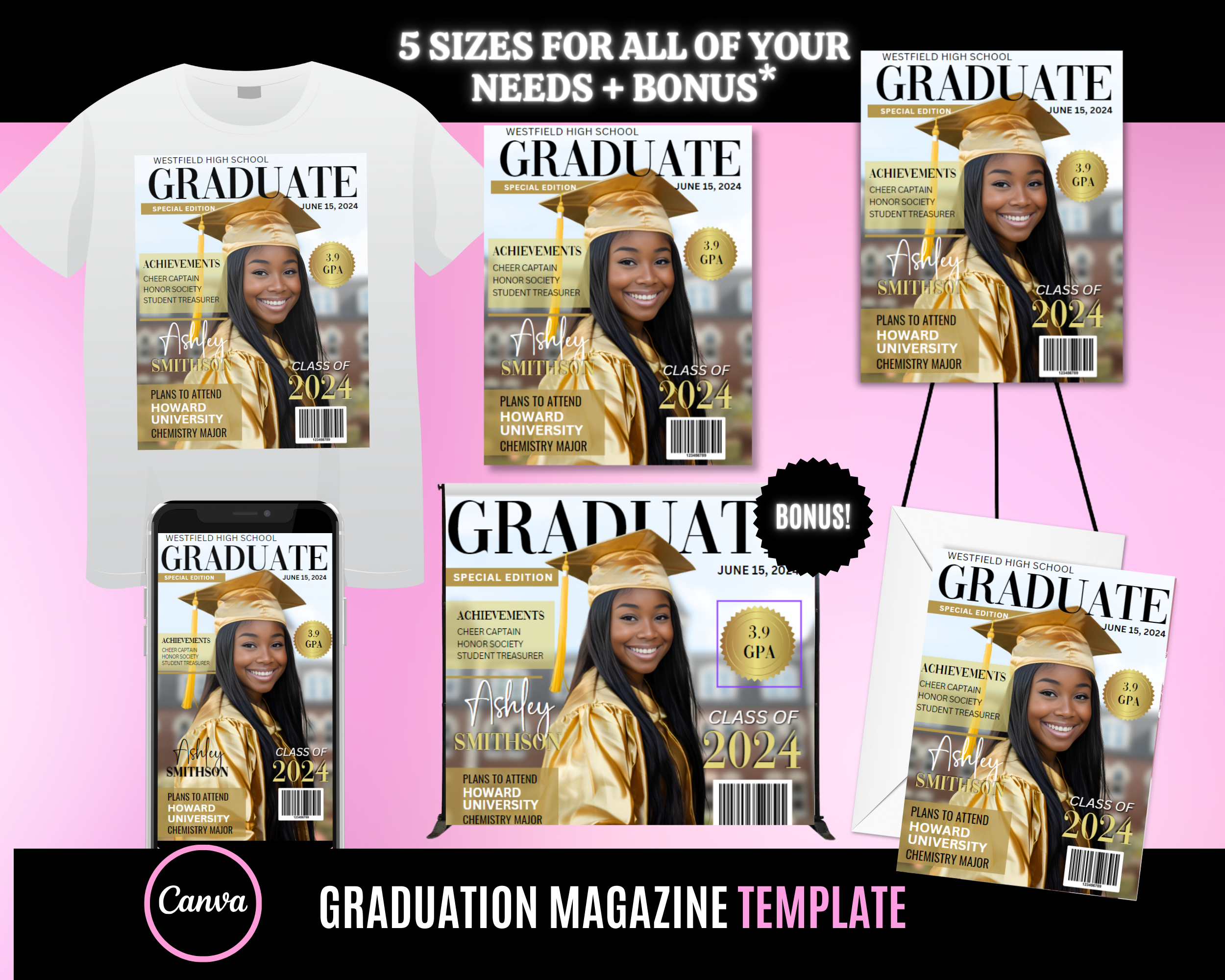 OMG really set it off with this magazine cover styled flyer! Use this Graduation Magazine cover as a poster or invitation!