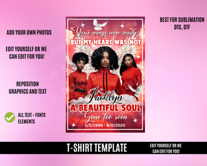 Memorial T-Shirt to represent a lost love one. This design file is editable in canva and you can use for any project such as t-shirts, stickers, banners, bags, flags, flyers and more!
