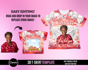 Memorial T-Shirt to represent a lost love one. This design file is editable in canva and you can use for any project such as t-shirts, stickers, banners, bags, flags, flyers and more!