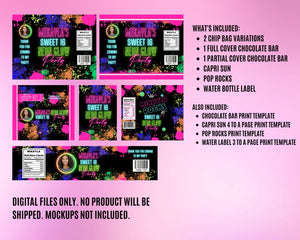 Candyland Birthday bundle Templates! Includes birthday chip bag, candy wrapper and water label digital files for you to edit, download and assemble at home!
