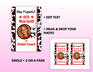Edit this Nugget Election today for your homecoming election! Edit and download within minutes! Print at home or at your local shop!