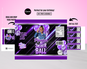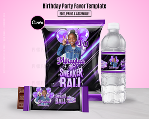 Sneaker Ball Treat bundle Templates! Includes birthday chip bag, candy wrapper and water label digital files for you to edit, download and assemble at home!